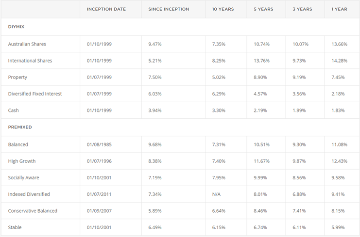 The indexed diversified fund averages a 5-year return of 8.01% and just like Host plus, has no 10 year average return yet.