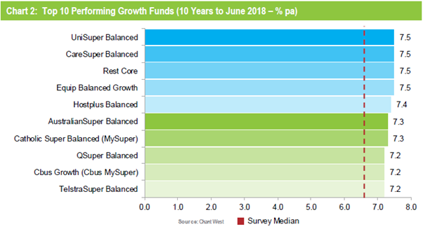 ratings agency Chant West explained that “The typical return objective for a growth fund is to beat inflation by 3% to 4%... Over that period, if the annualised return is 8.3%, and the annual CPI increase is 2.5%, giving a real return of 5.8% per annum – well above the 3% to 4% target”.