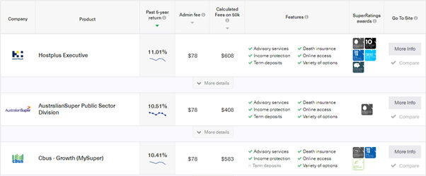 Now by judging this information, I will cut the results down to just two choices. Australian super, and Hostplus.