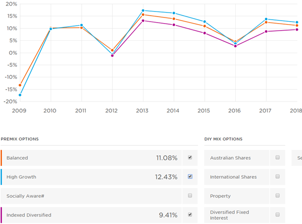 A super fund is not just one simple investment (unless you don’t specify the investment option you will want in which the default balanced option will automatically be chosen), there are a wide range of investment options to choose from to suit your situation or risk tolerance but for this guide of superannuation I will focus on the pre-mixed options, specifically the balanced, indexed balanced and growth options.