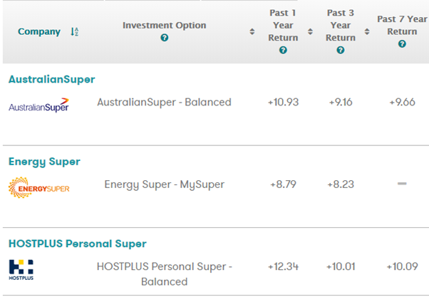 As we can see Australian super Balanced fund averaged a 5-year return of 10.51%, and 10 year return of 7.35%
