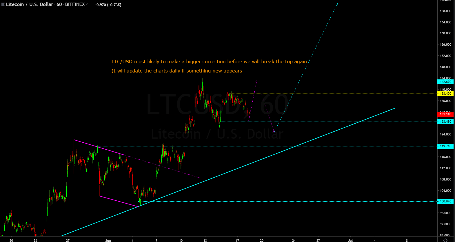 LTC/USD most likely to make a bigger correction before we will break the top again.