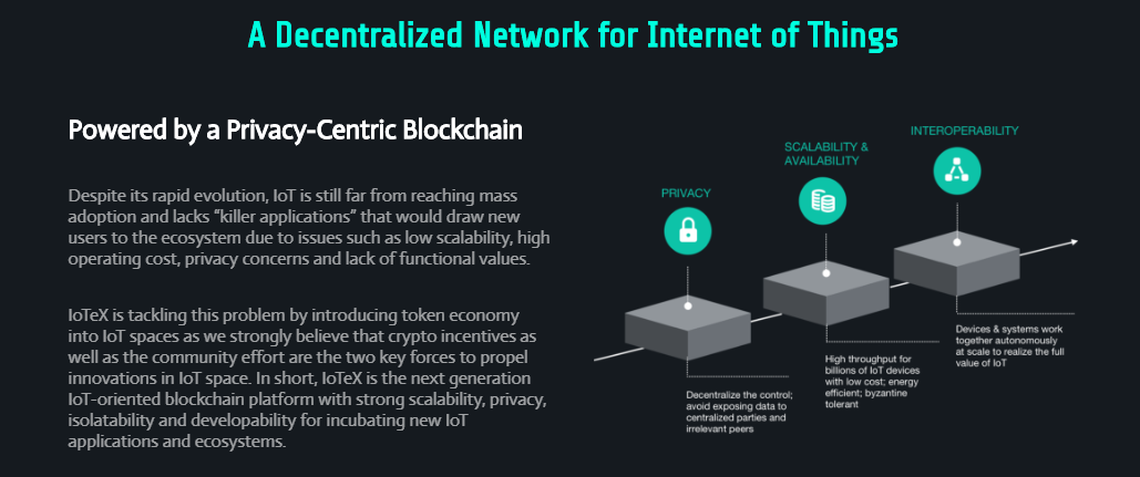 Так что же такое интернет вещи - это система взаимодействия умных смарт-устройств в реальной жизни и в реальной экономике. Дело в том, что сейчас нет приложений в данной сфере , а скорее всего это и должен быть блокчейн 3.0 , а может быть даже и 4.0. Так вот все сложности , связанные с внедрением блокчейна в реальную жизнь и собирается решать IoTeX. Так что проект действительно уникален, и если все будет успешно , то это будет революция в "эпохе" блокчейна.