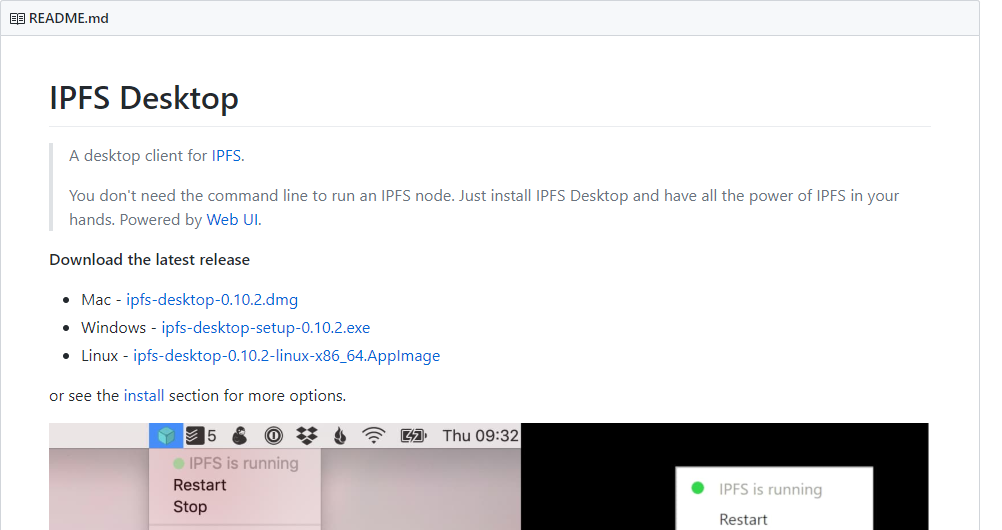 Let’s go over to ipfs.io and click install then Desktop app.