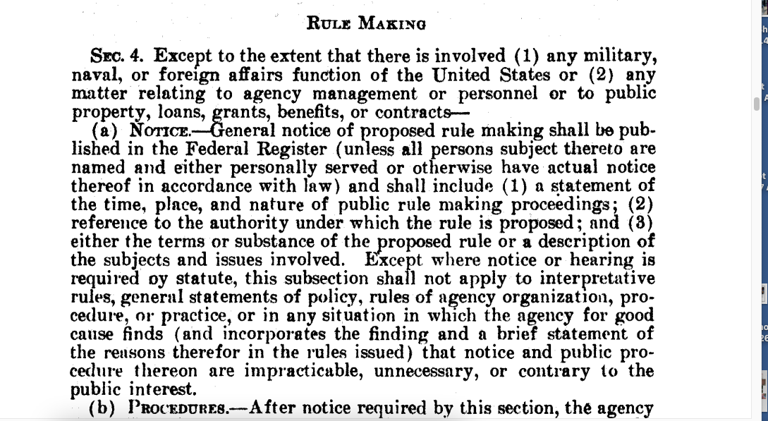 The APA requires that when the U.S. Treasury Department intends to make new regulations