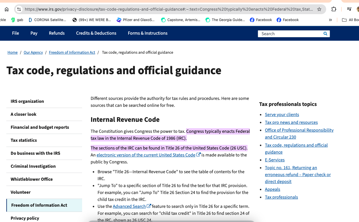 https://www.irs.gov/privacy-disclosure/tax-code-regulations-and-official-guidance#:~:text=Congress%20typically%20enacts%20Federal%20tax,States%20Code%20(26%20USC).