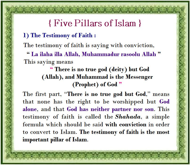 “ There is no true god (deity) but God (Allah), and Muhammad is the Messenger (Prophet) of God ”