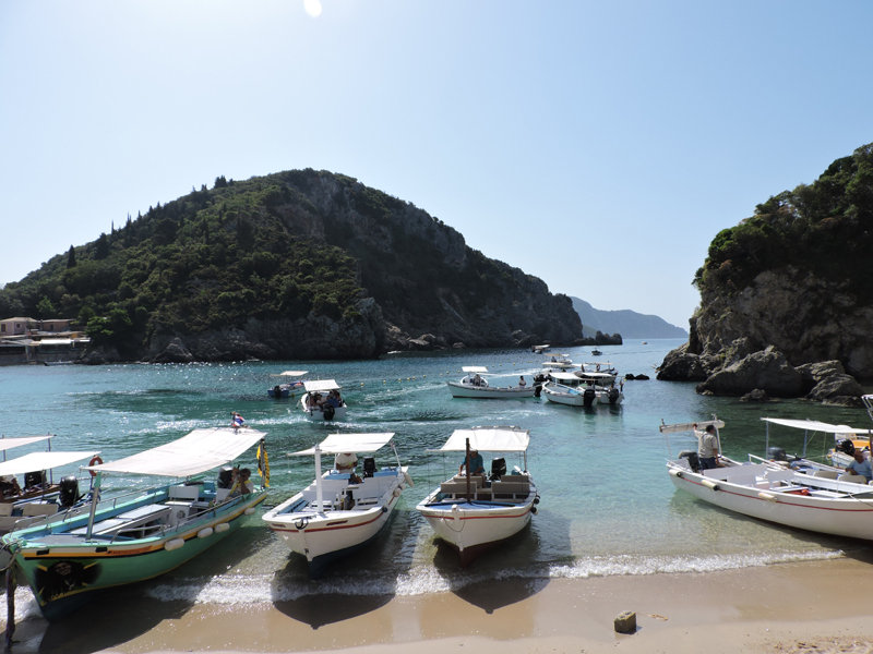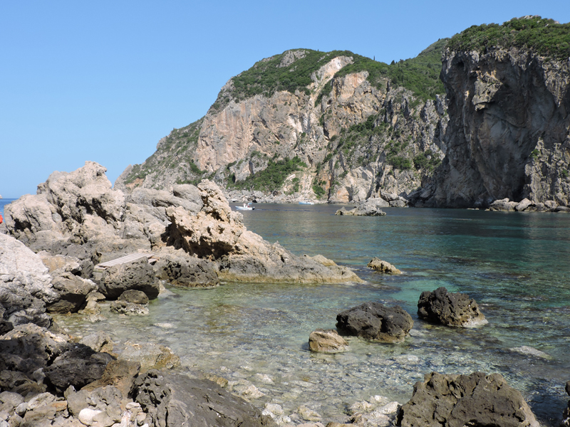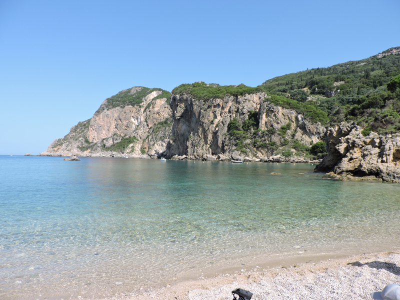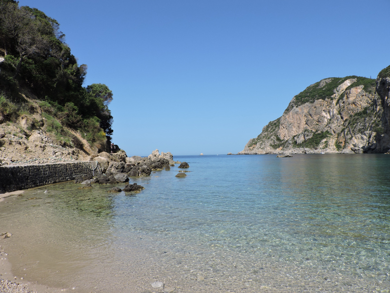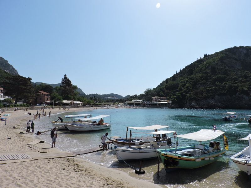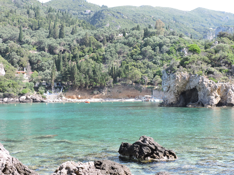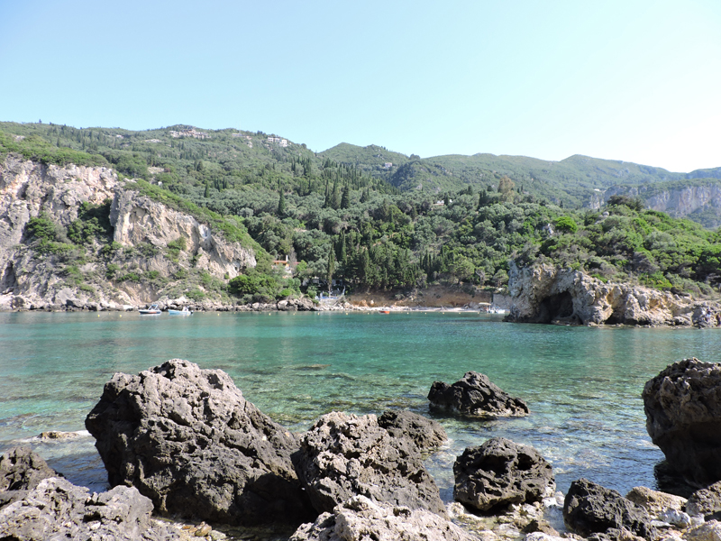 Nel frattempo, tra una chiacchierata e l'altra arriviamo all'isola di Paleokastritsa, una baia con spiaggia sabbiosa e acqua cristallina circondata da monti e da vegetazione.