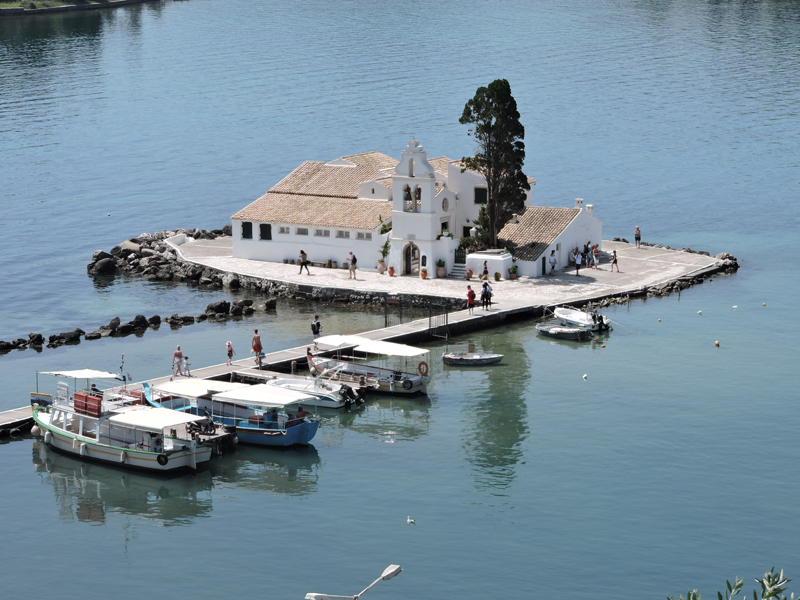 Another few minutes to be able to photograph the island with the white monastery of Vlacherna from above, joined to the mainland by a jetty (these photos have taken my husband, the merit is his!)