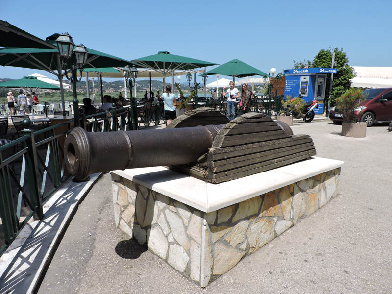 Ritorniamo sul pullman per proseguire la nostra escursione, questa volta ci dirigiamo verso l'isolotto di Kanòni, che come si intuisce dalla parola significa cannone, in seguito alla installazione di un battaglione francese nel 1798, di cui si conserva un cannone messo in esposizione dinanzi ad un chiosco e del quale vi posto la foto:
