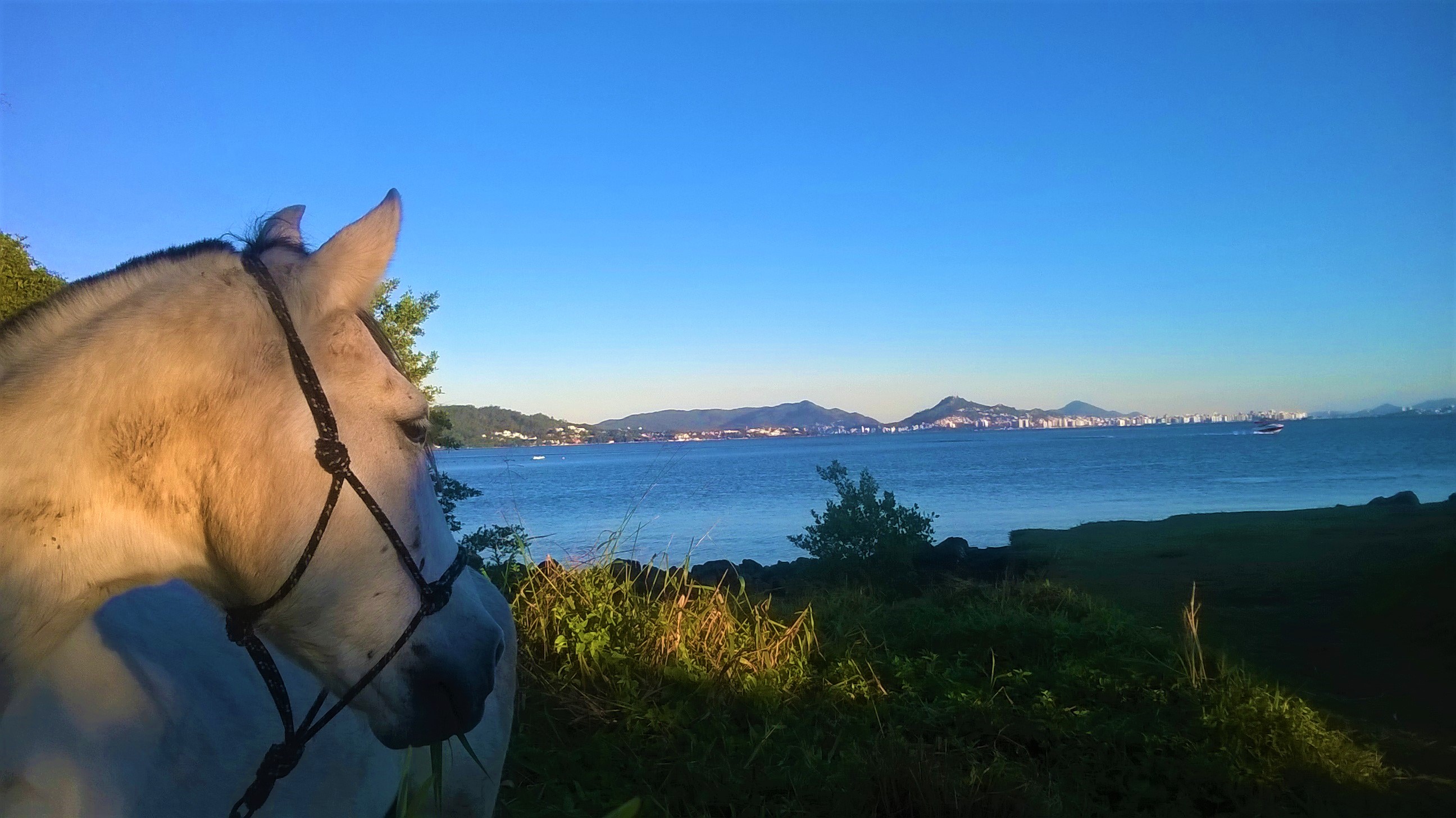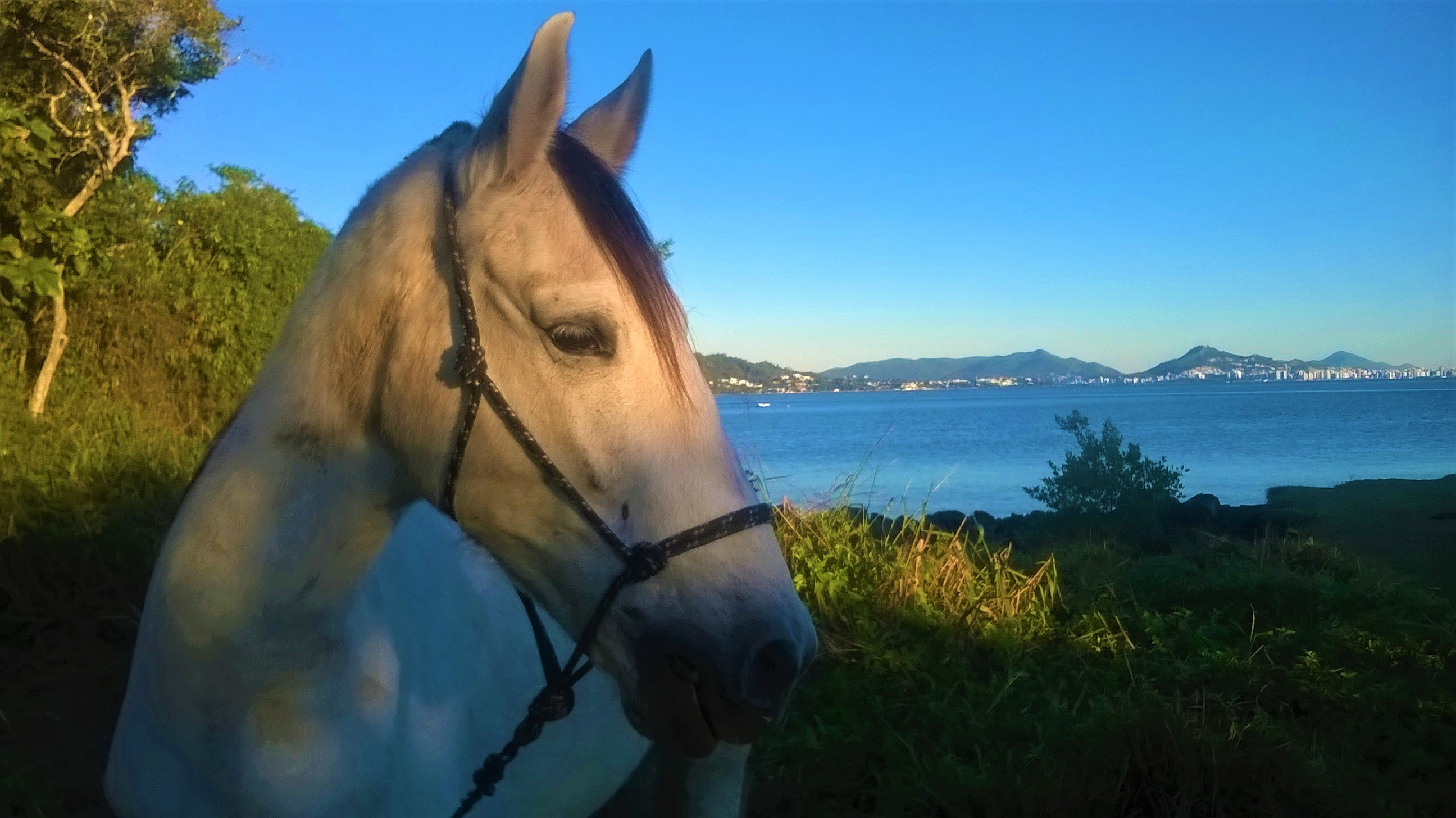 This is white, the horse I met on the beach of Sambaqui, a small community of fishermen to the northwest of the island, it was quiet coming out of the bush, while I was intent to take pictures of the coast, which I will shortly collecheró in a post to show you.