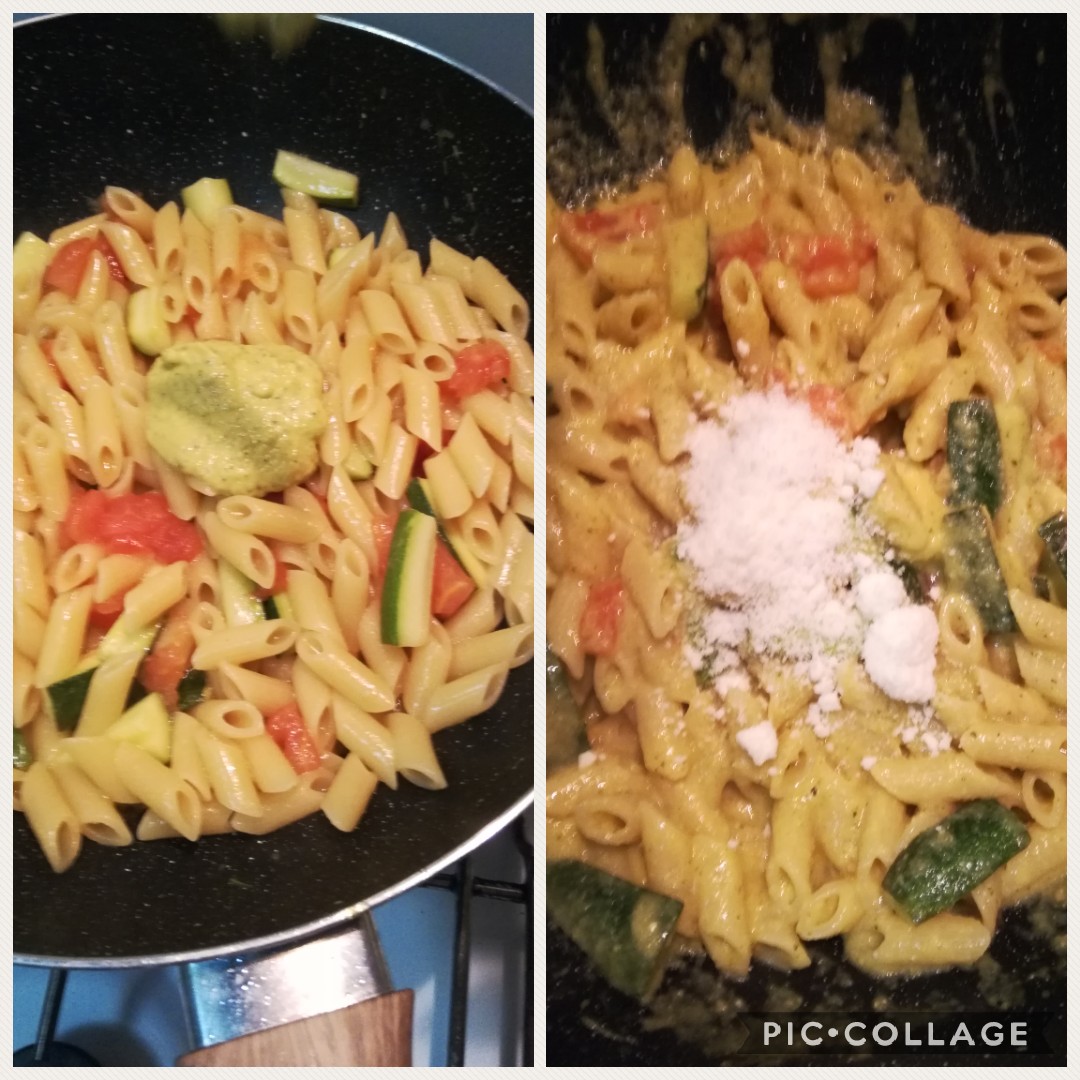 Oggi su richiesta di mia figlia per pranzo ho preparato il pesto di zucchine e pomodoro fresco. Un piatto semplice e facile da preparare. Non dico veloce perché si sa, per fare pietanze buone ci vuole tempo.