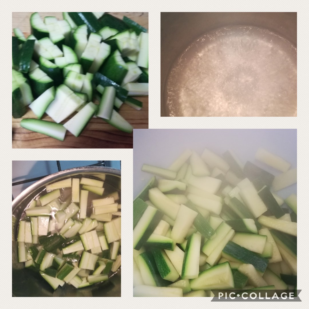 Le zucchine così tagliate le dovete bollire in abbondante acqua salata per circa tre minuti. Devono rimanere quasi crude. Facendo questo mantengono tutte le proprietà benefiche e rimangono di un verde acceso.