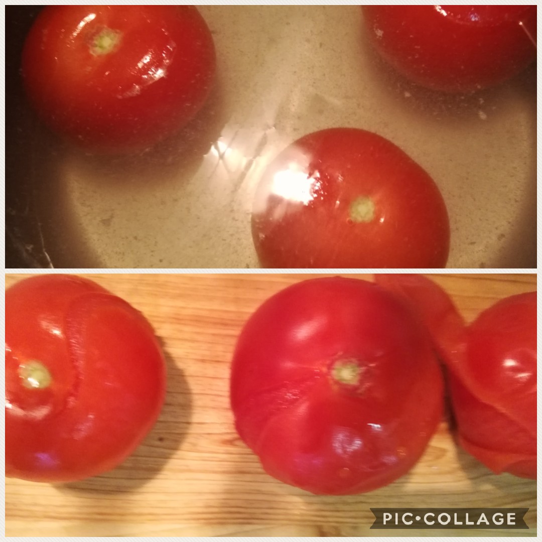 Lessate i pomodori sempre in acqua salata per circa tre minuti. Per fare il pesto bisogna togliere la buccia, il modo più semplice è bollire i pomodori.