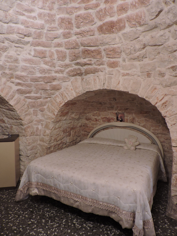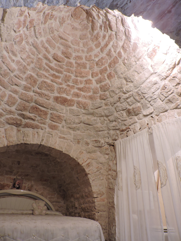 Non vi sono finestre, tranne una piccola per vano, che basta ad illuminare: la tipologia costruttiva del trullo, infatti, con le sue pareti spesse (2 mt a detta della povera guida sprovveduta) e bianche, assicura un ottimo equilibrio termico ed una illuminazione adeguata.