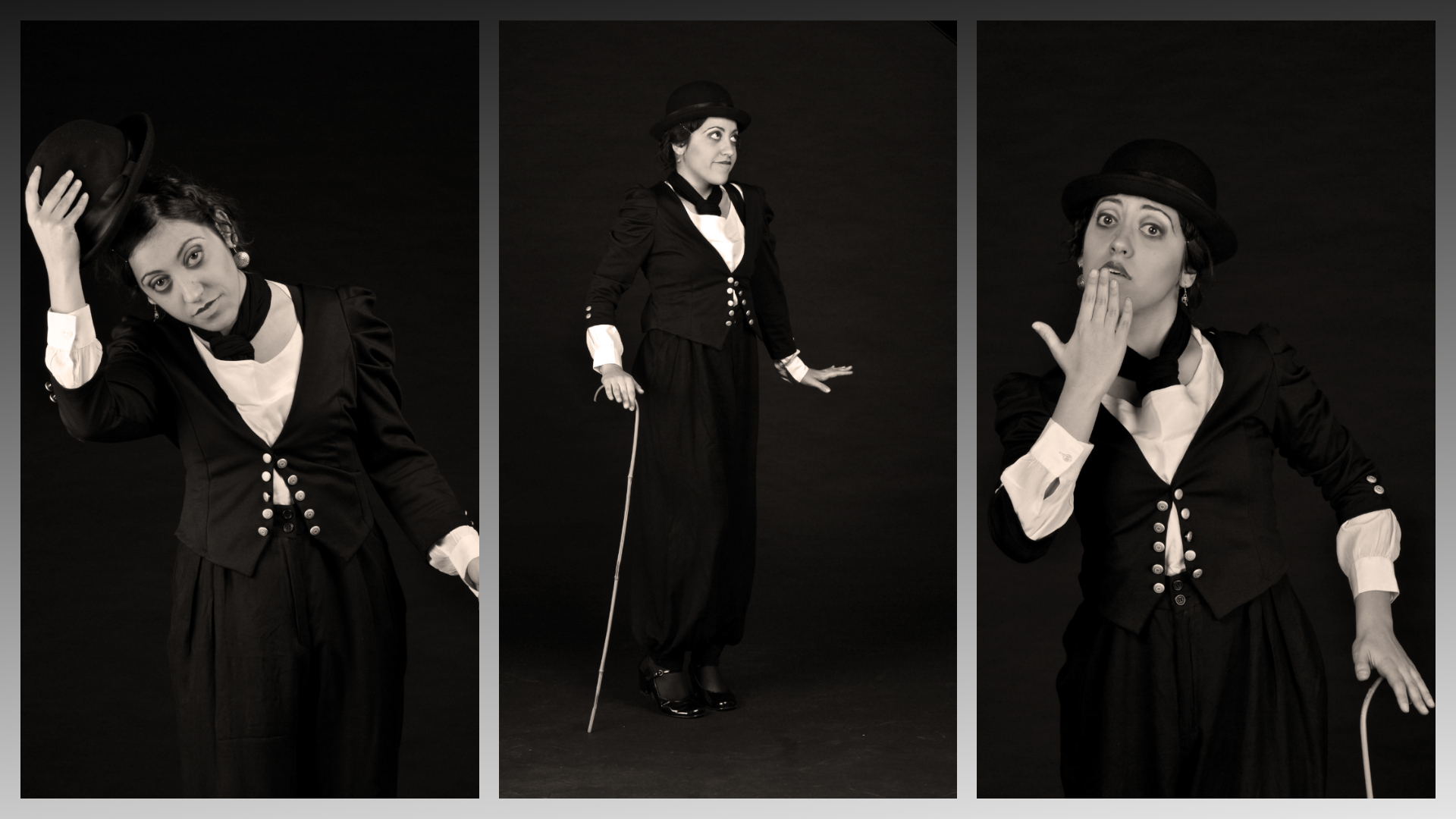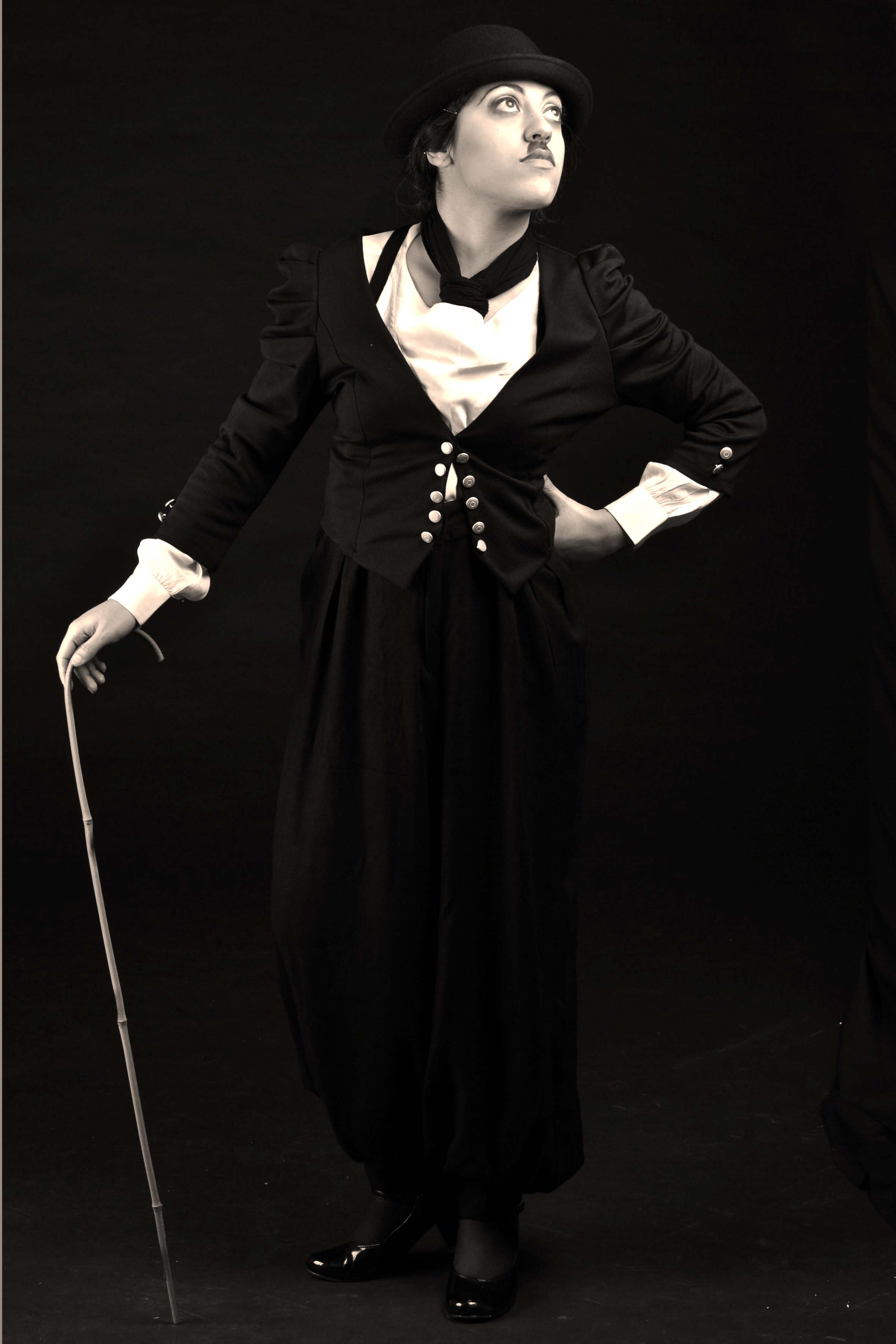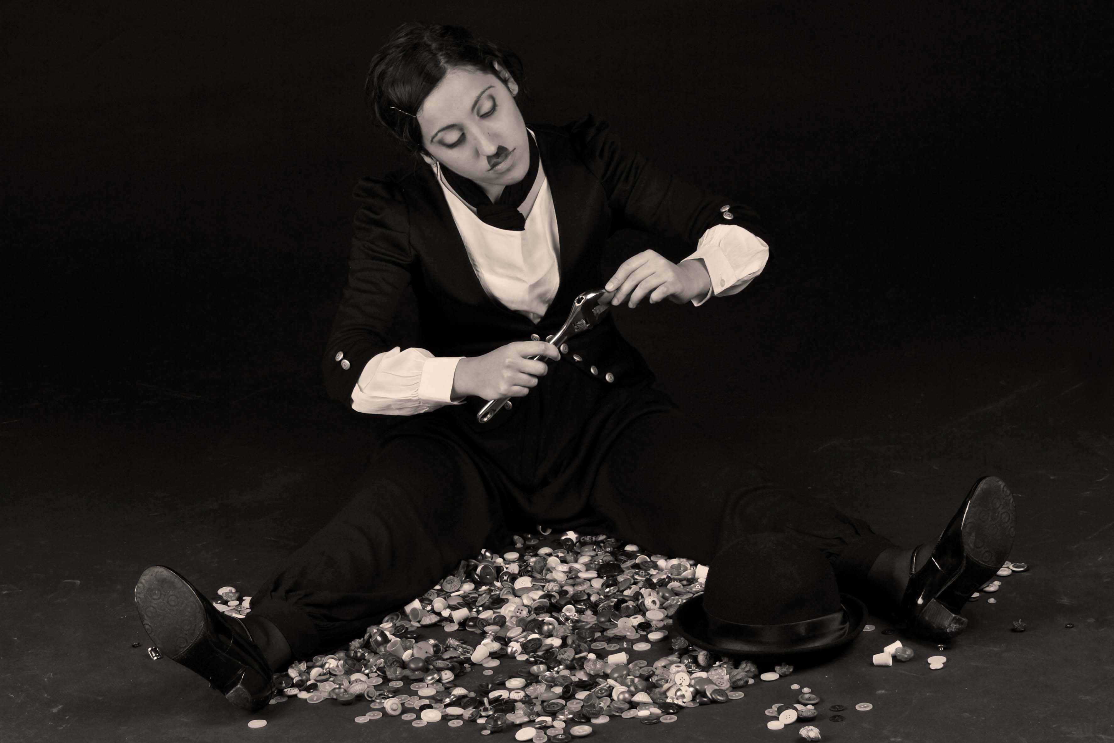 Ho realizzato su questa storia una sequenza di scatti, da cui sono tratte le fotografie pubblicate, seguendo la trasformazione della mia modella che, immergendosi nella magia dei più celebri capolavori di Chaplin, si identifica sempre più nel malinconico piccolo uomo simbolo dei problemi che hanno segnato l'inizio del secolo scorso.