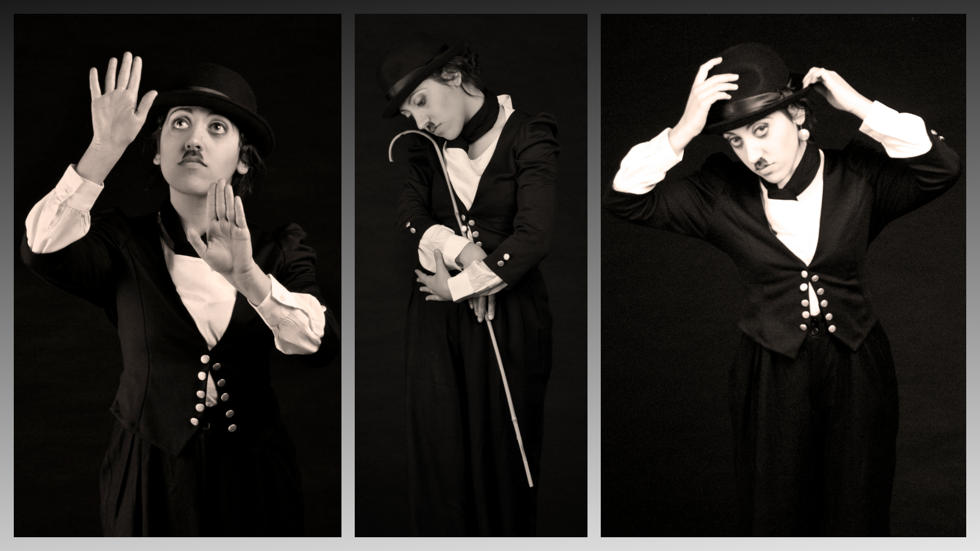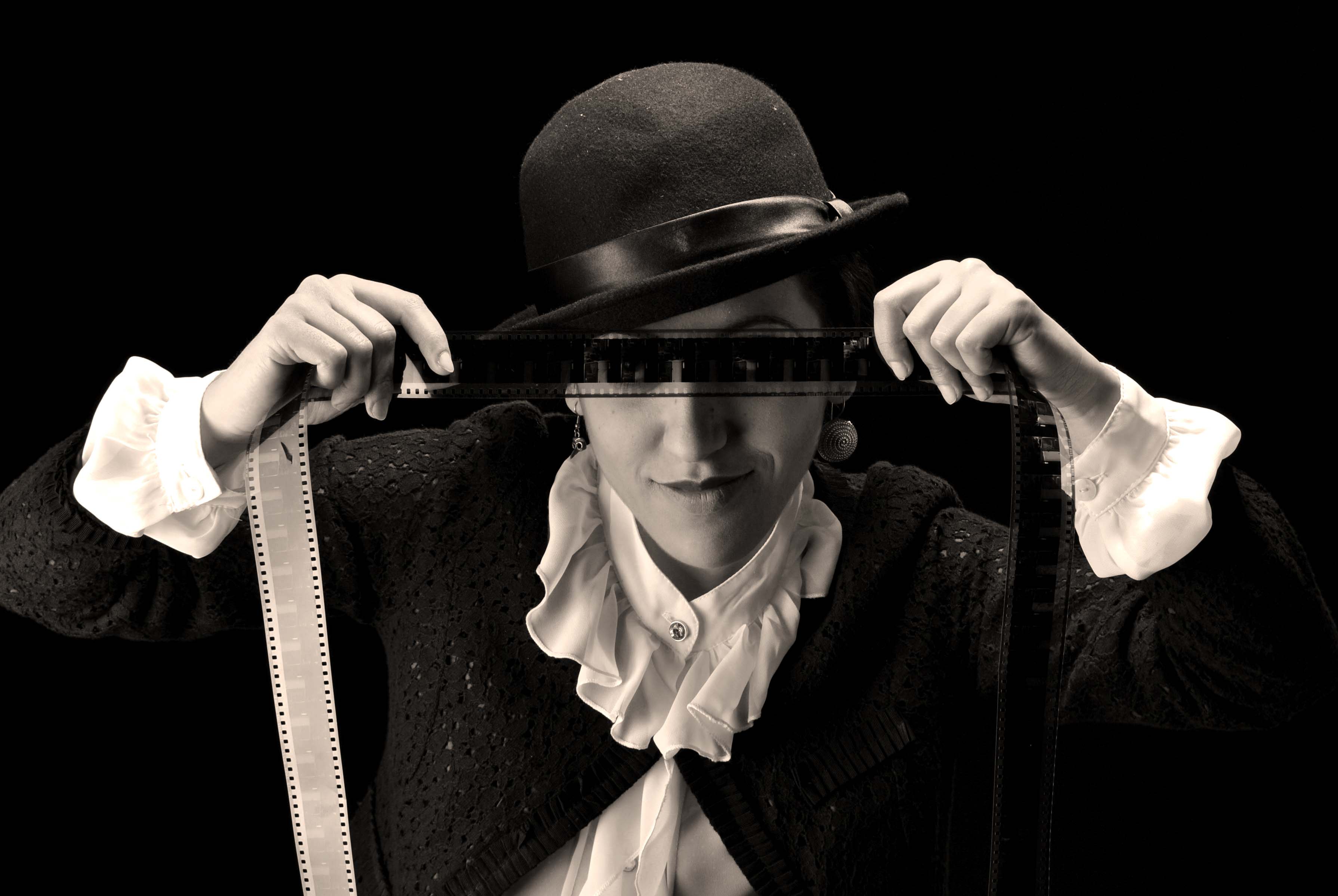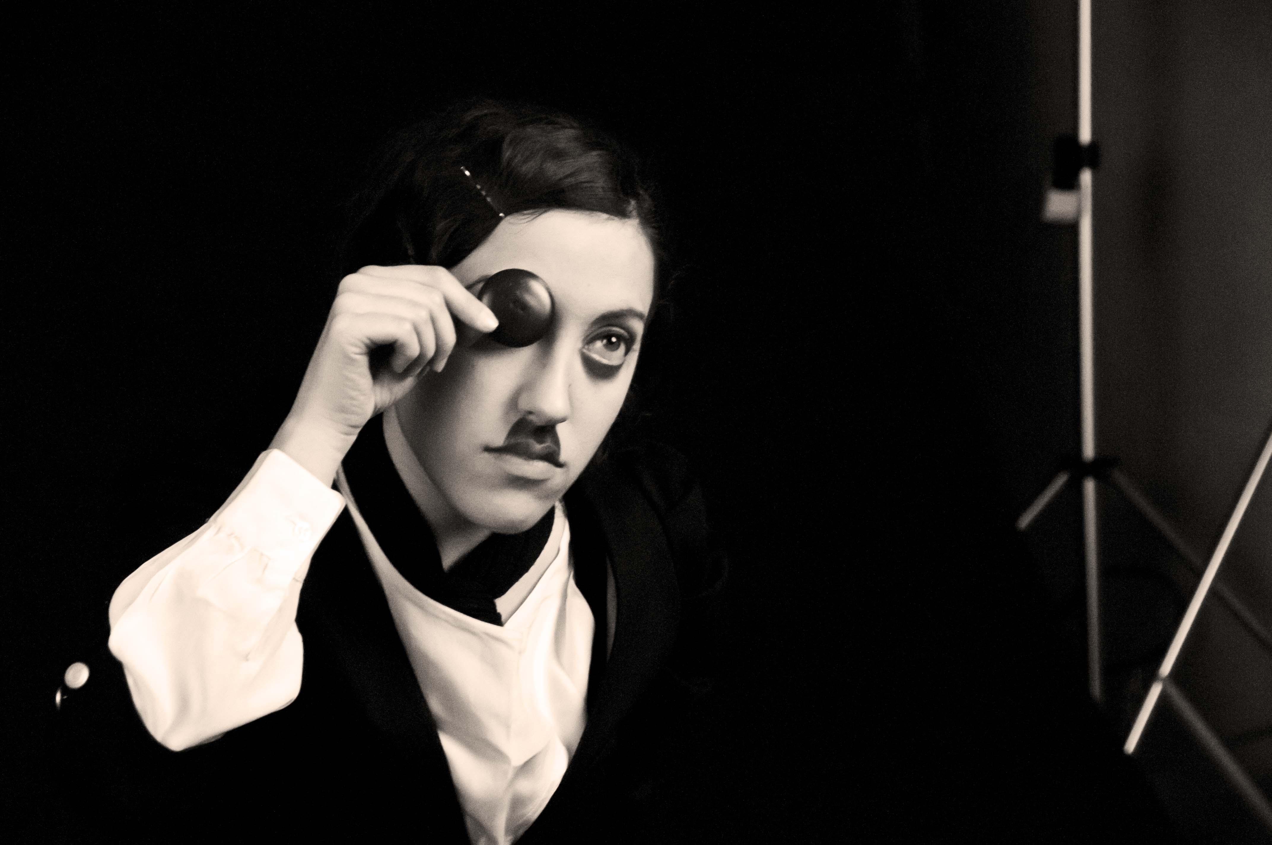 Ho realizzato su questa storia una sequenza di scatti, da cui sono tratte le fotografie pubblicate, seguendo la trasformazione della mia modella che, immergendosi nella magia dei più celebri capolavori di Chaplin, si identifica sempre più nel malinconico piccolo uomo simbolo dei problemi che hanno segnato l'inizio del secolo scorso.