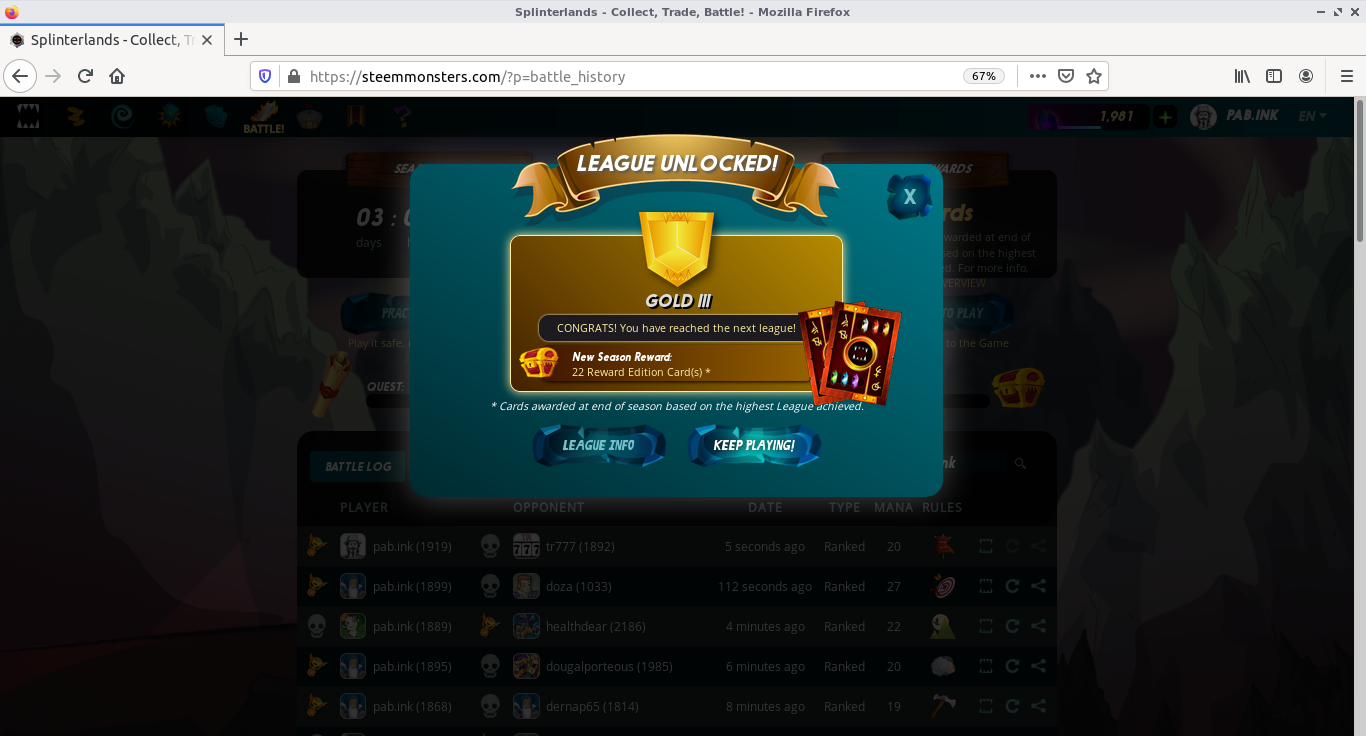Da diversi mesi avevo rinunciato a scalare la classifica oltre la Silver League I che raggiungo abbastanza agevolmente.