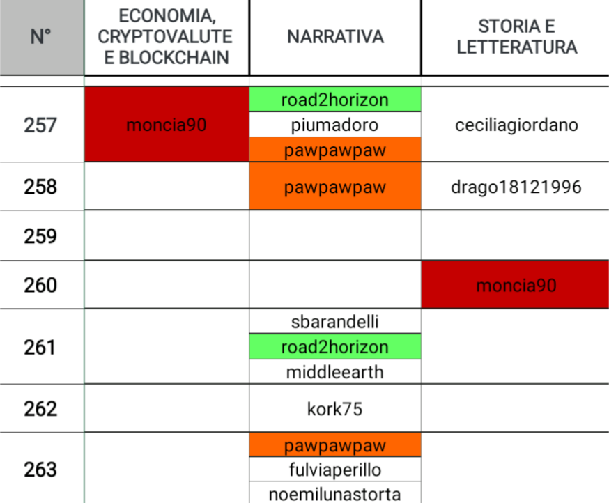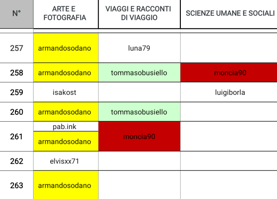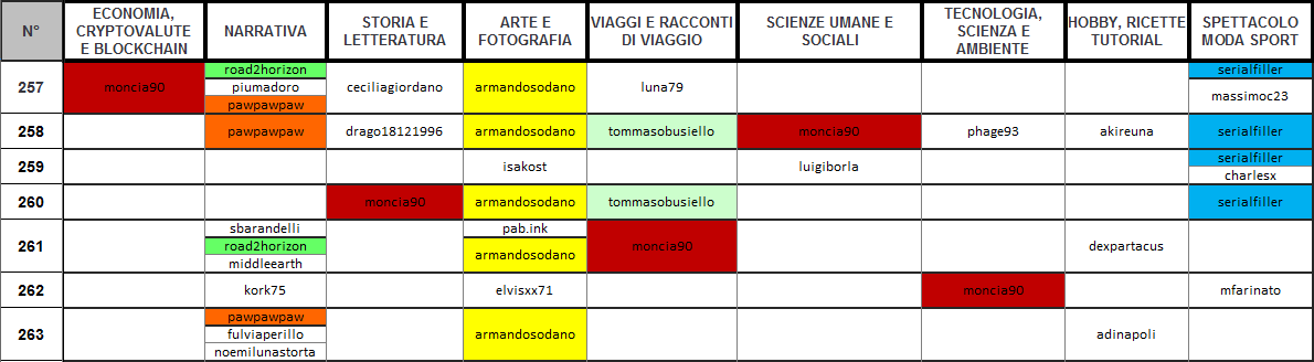 Il titolo di “autore più poliedrico” se lo aggiudica di tutto rispetto @moncia90 con ben cinque posizionamenti in cinque categorie diverse, complimenti.