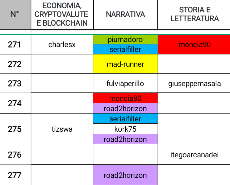 Il titolo di “autore più poliedrico” se lo aggiudica @moncia90 con ben cinque posizionamenti in quattro categorie diverse, complimenti.