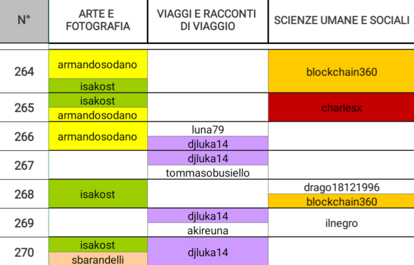 Grazie mille Sara! Sono felice di riuscire ogni settimana a fare il mio contributo. Ad esclusione di me e @sbarandelli mi sembra che ormai le categorie siano diventando proprie di alcuni autori, (semi)professionisti in quella tematica.