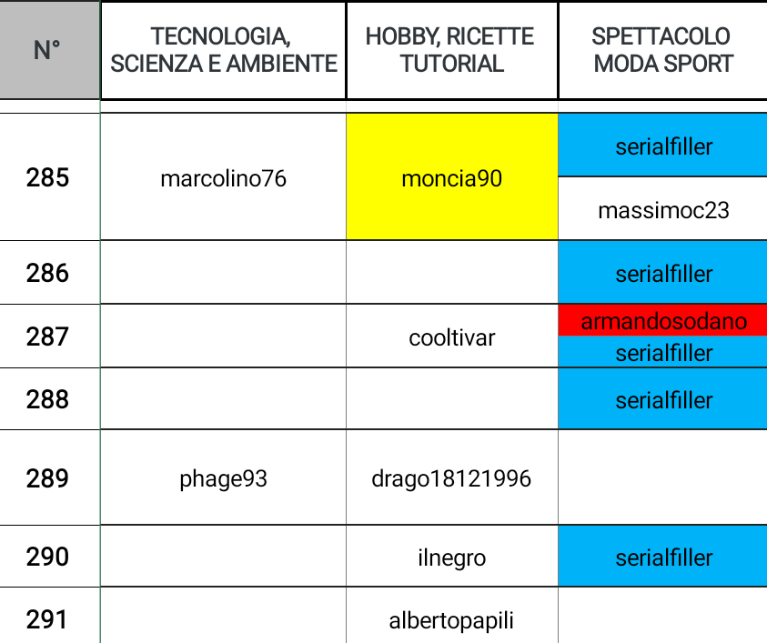 @serialfiller con 5 piazzamenti