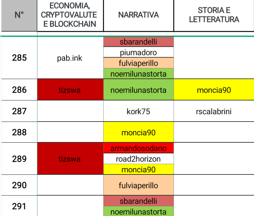 Il titolo di autore più poliedrico se lo aggiudica @moncia90 con ben cinque posizionamenti in quattro categorie diverse, complimenti. Non è da meno @armandosodano con sei posizionamenti in tre categorie diverse.