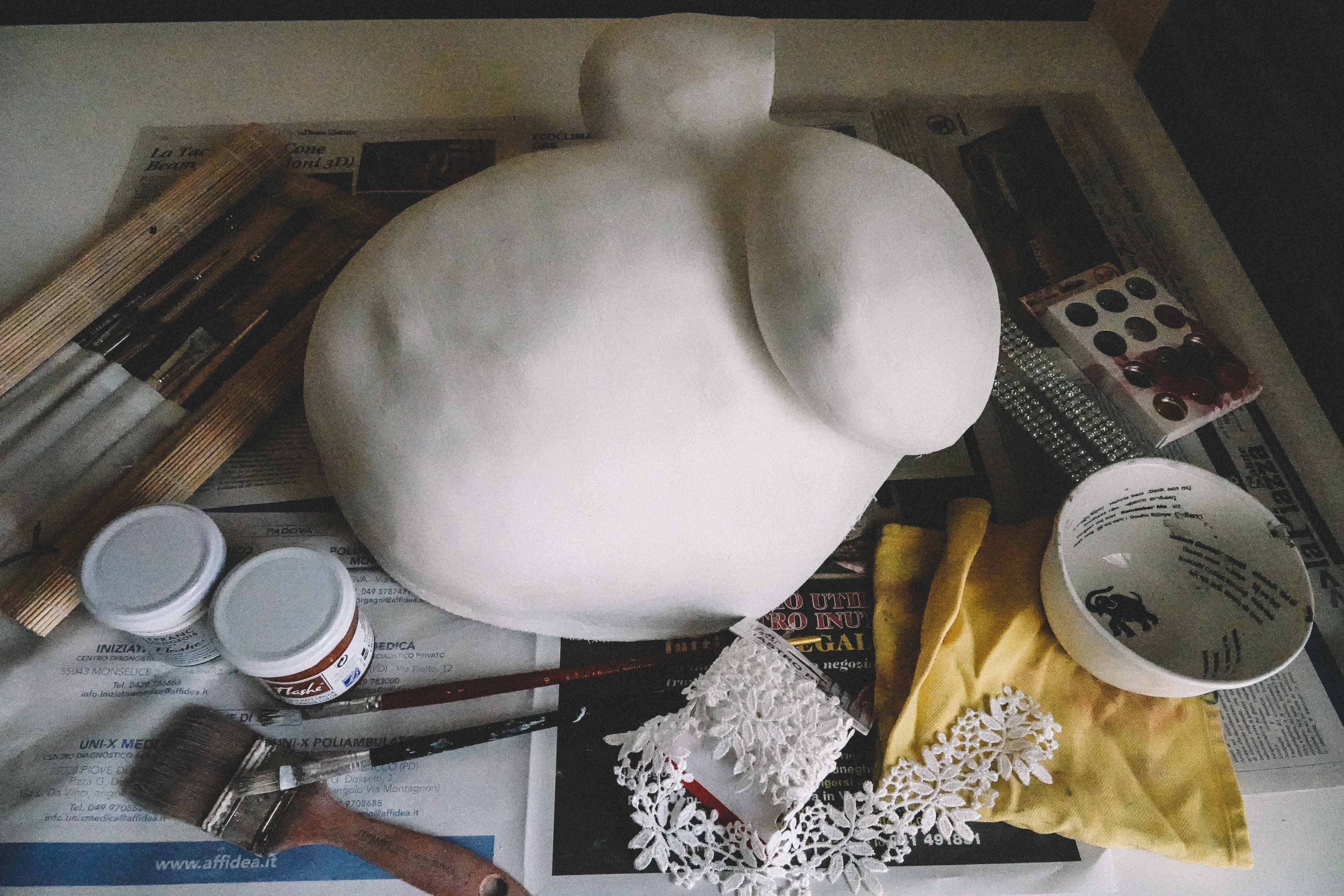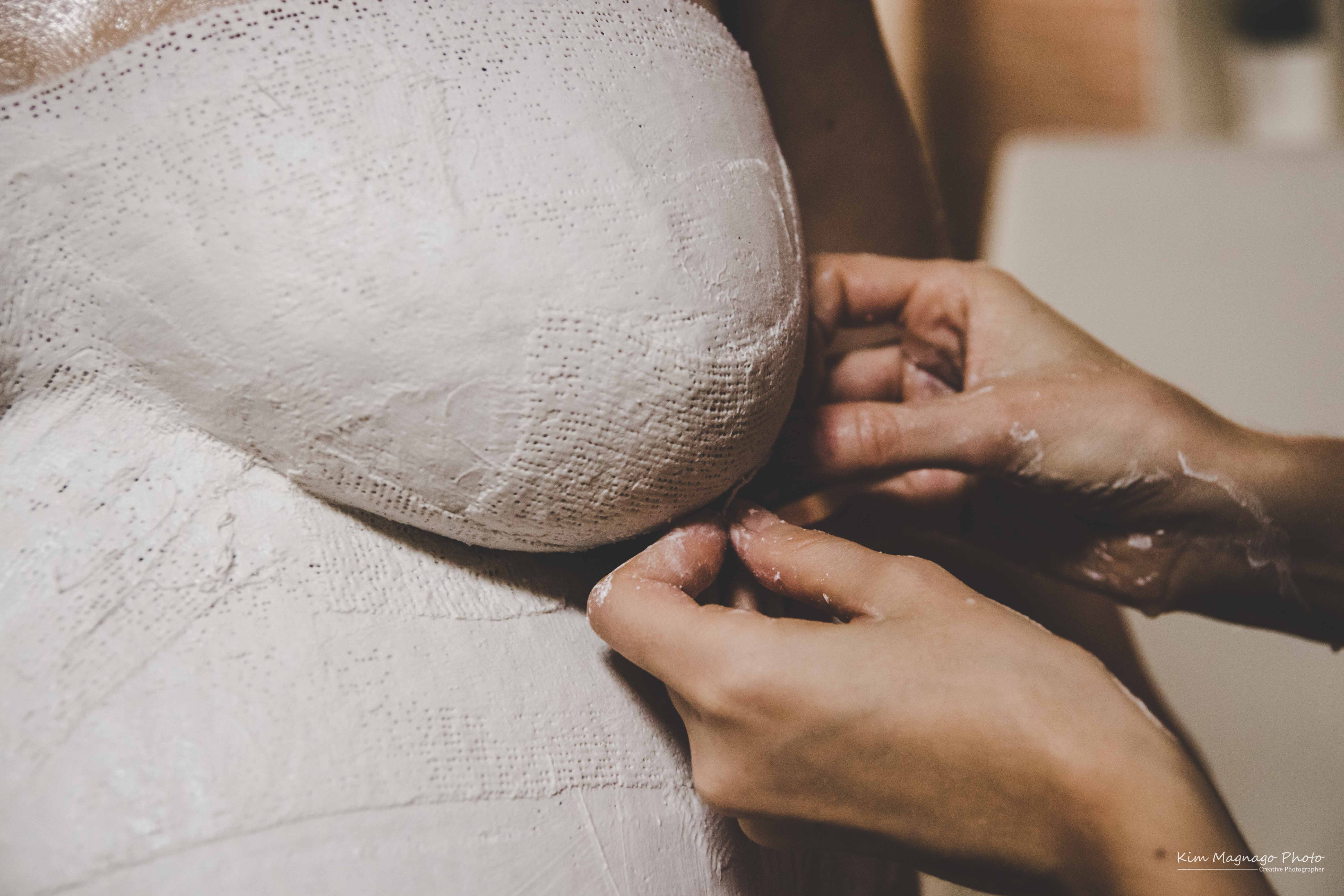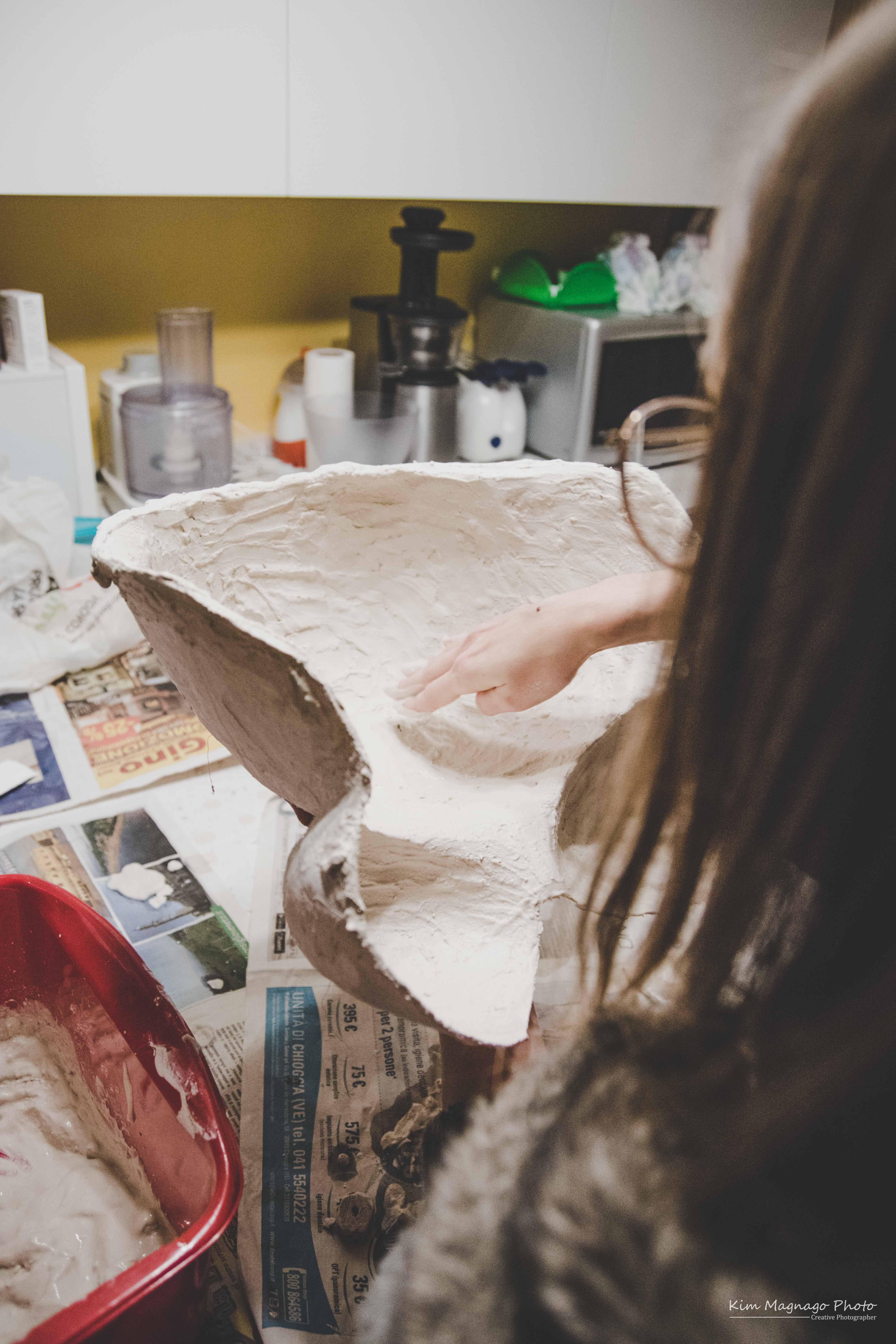 Una volta sicure, abbiamo delicatamente tolto il pancione di gesso che dopo 3 giorni sarebbe stato pronto per la fase successiva.
