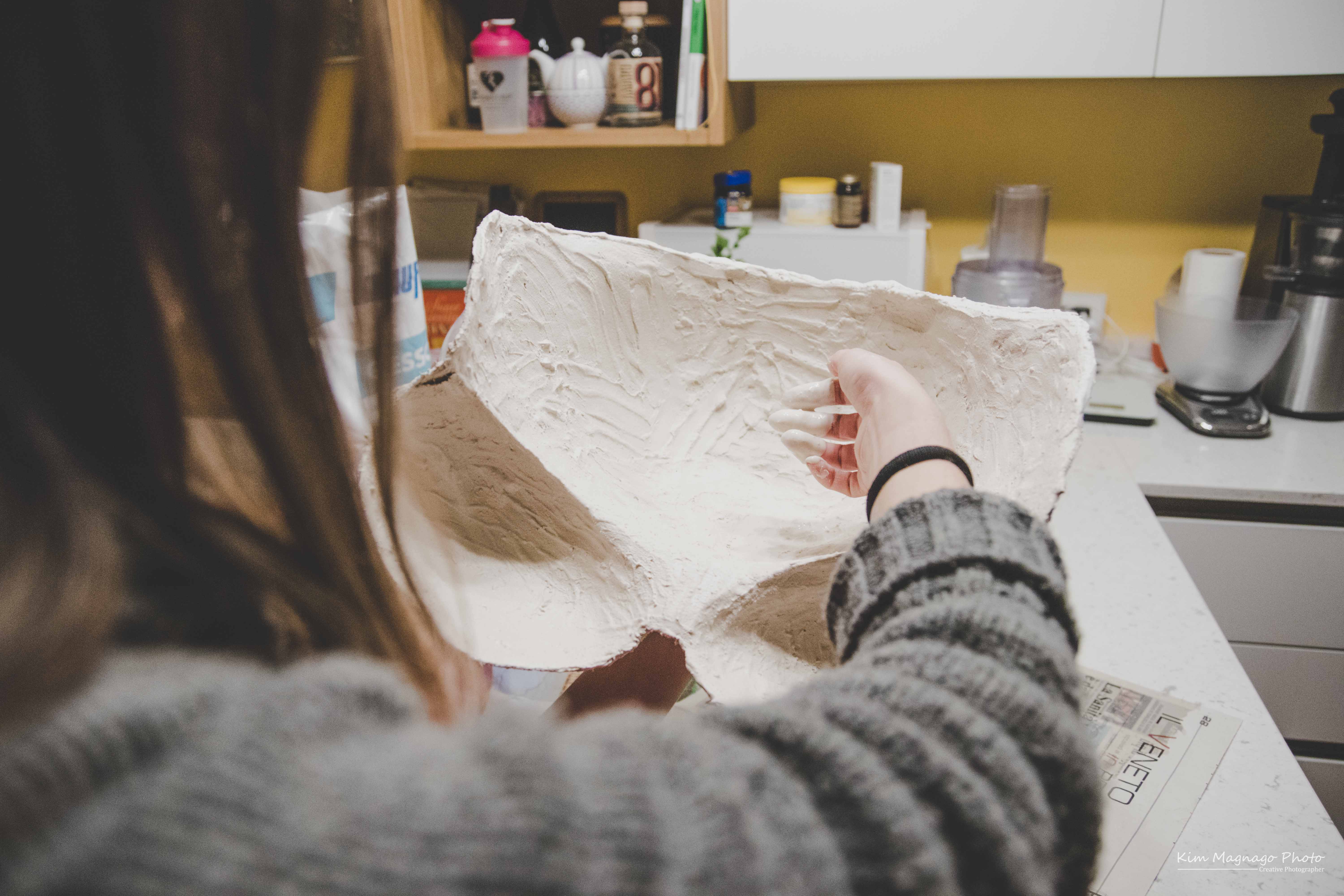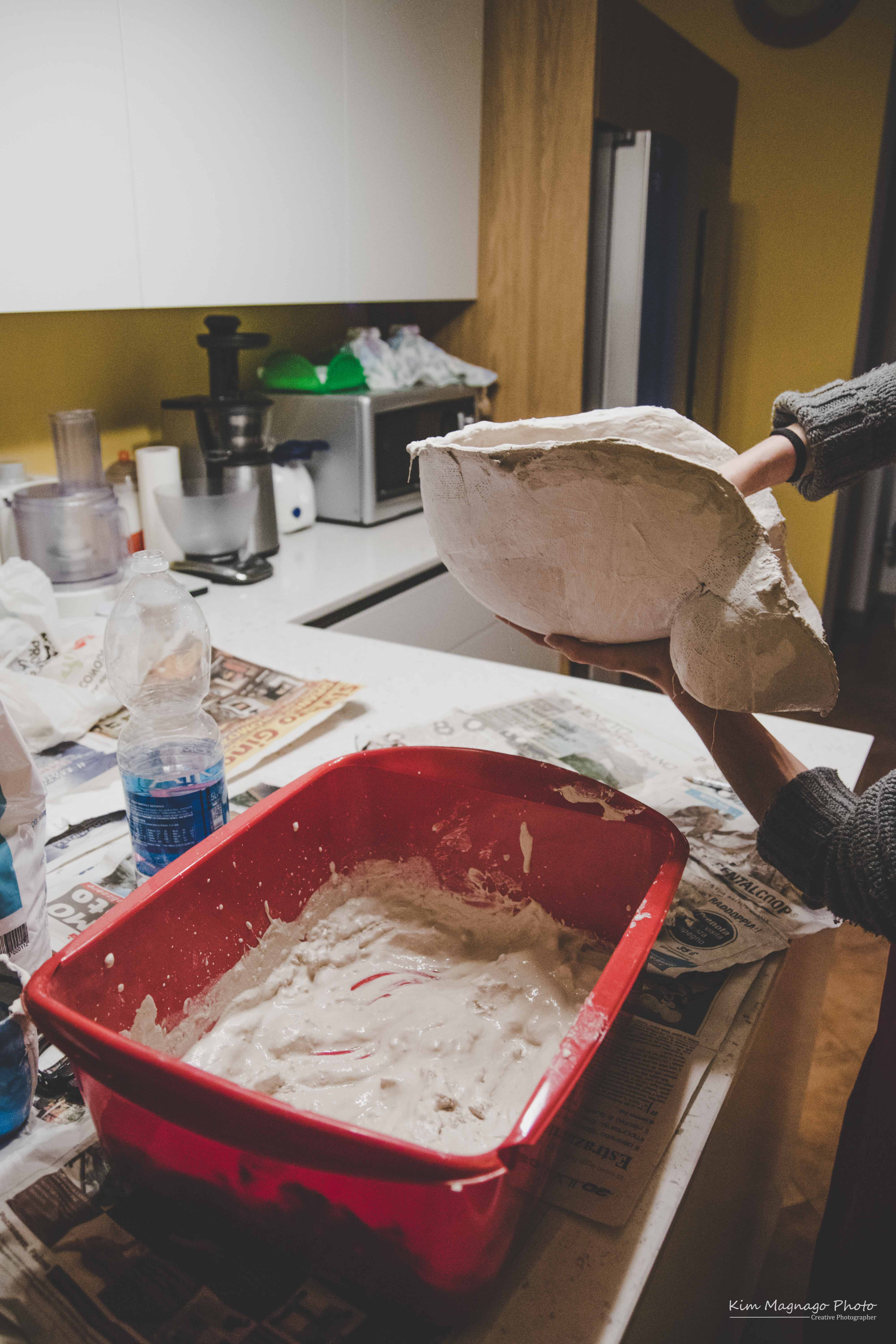 Eccoci mentre facciamo le nostre tre colate di gesso, una per la parte interna, e due per quella esterna!