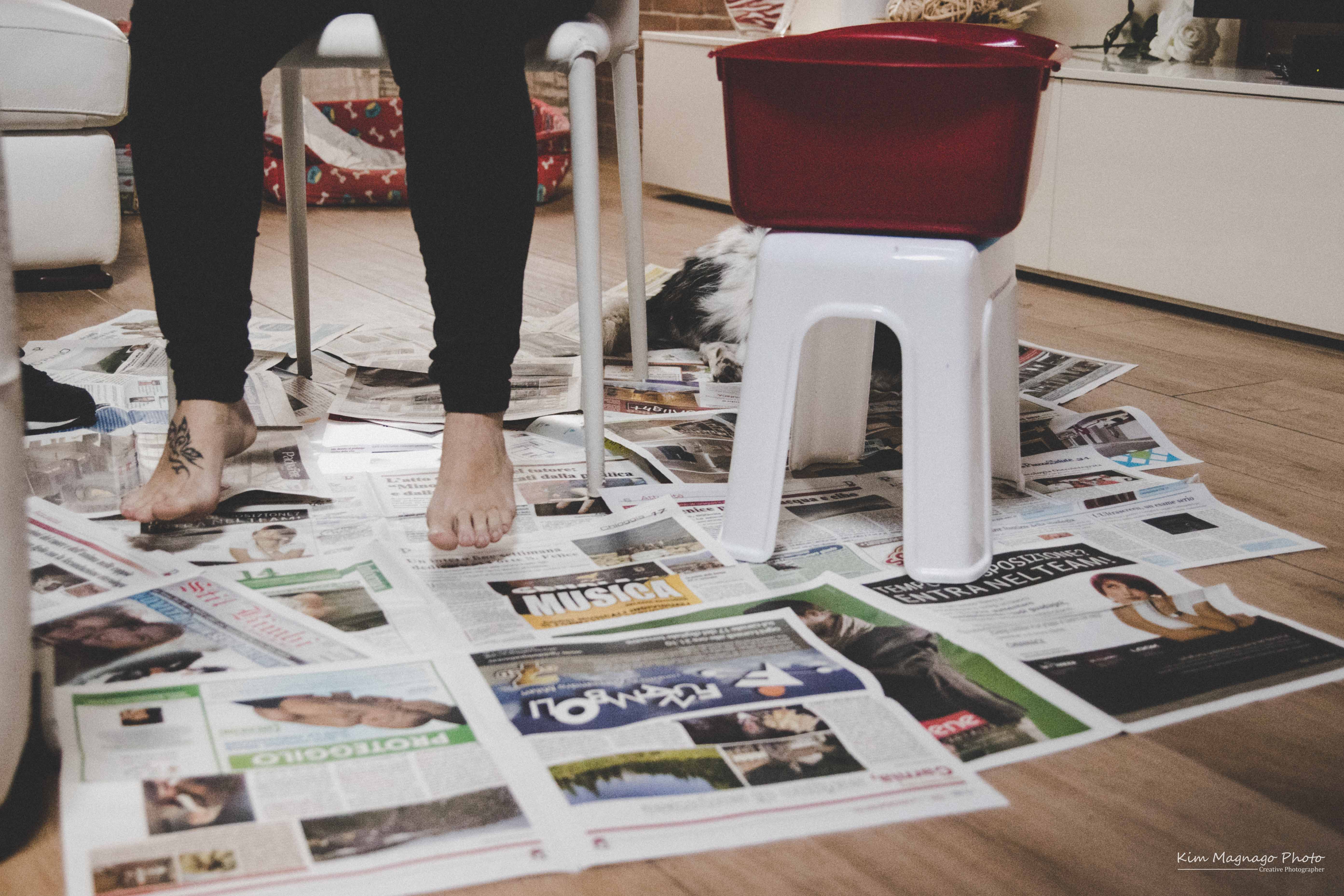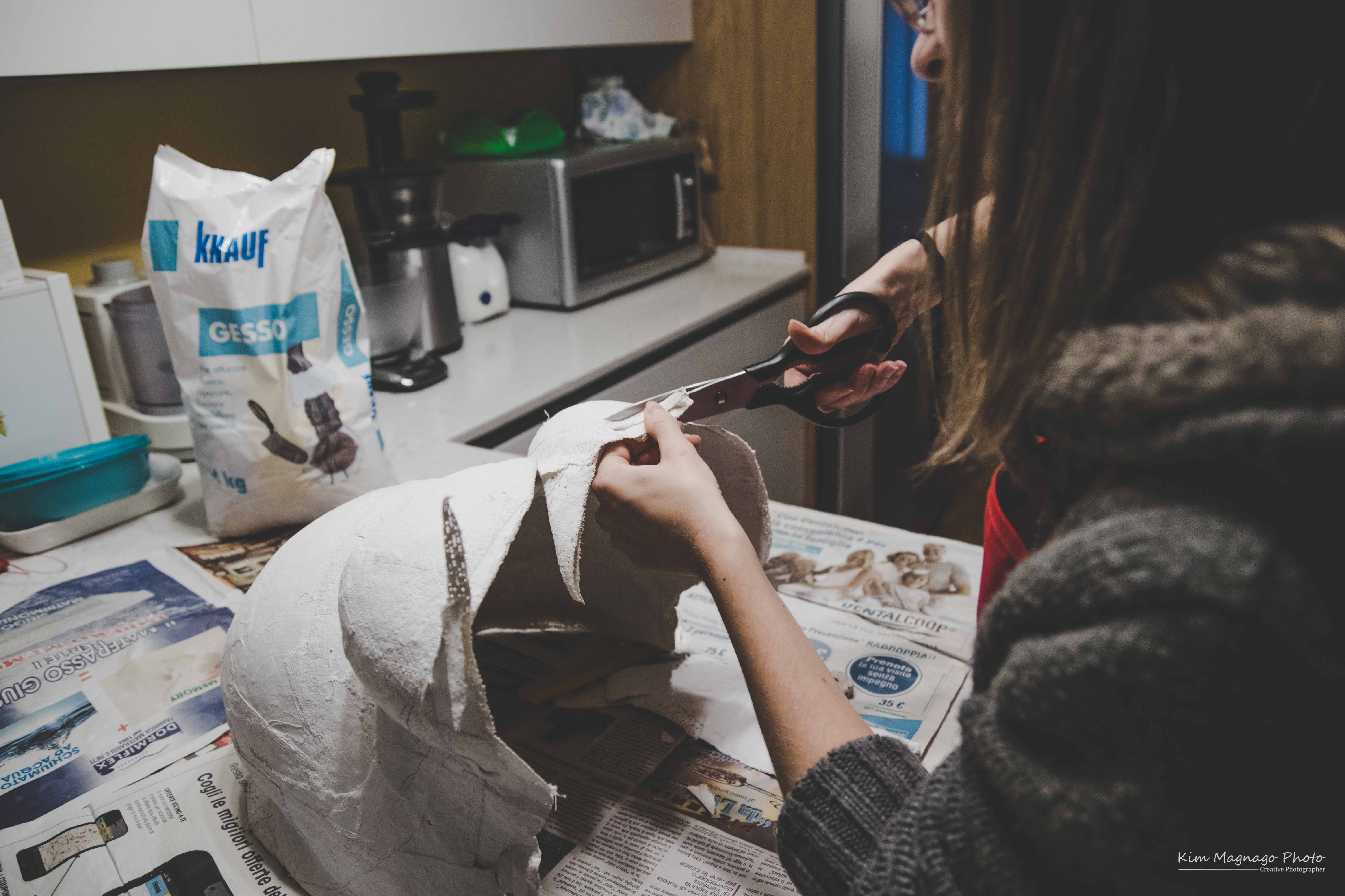 Importantissimo quindi coprire la zona di lavoro con carta da giornale e prepararsi con tutte le strisce di garza gessata e la bacinella di acqua. Perchè si sa, per la riuscita di un buon lavoro occorre essere ordinati!