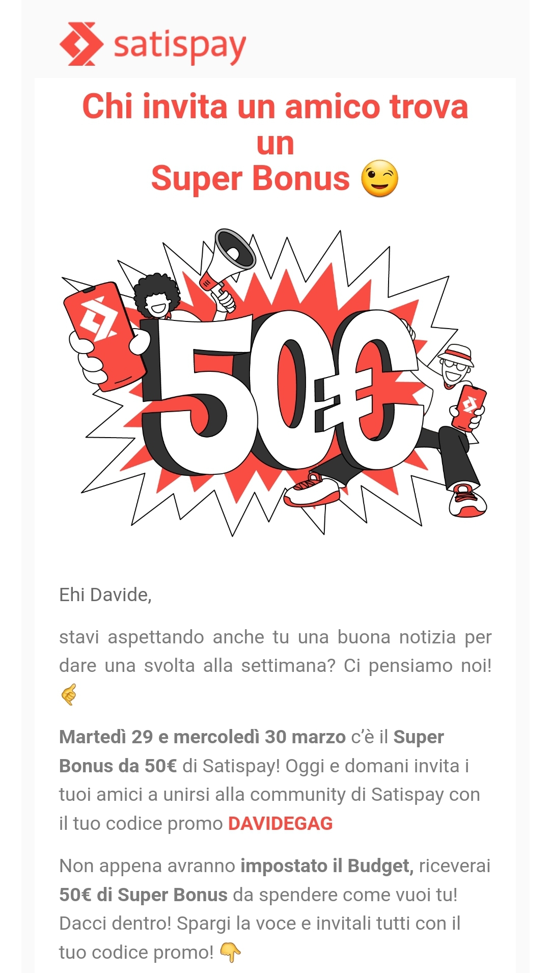 Ricordo che, oltre a tutti i vantaggi nell'usare satispay: