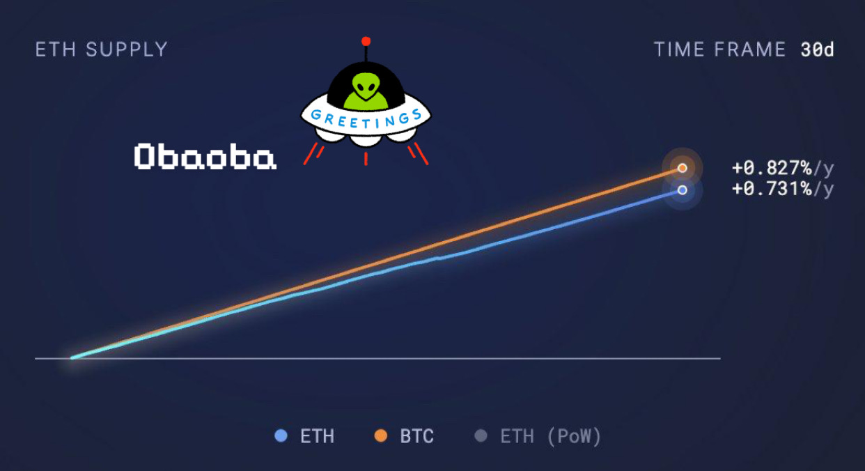 - the inflation rate of $ETH is .1% less than $BTC in last 30 days (1.2% less in last 2 years)