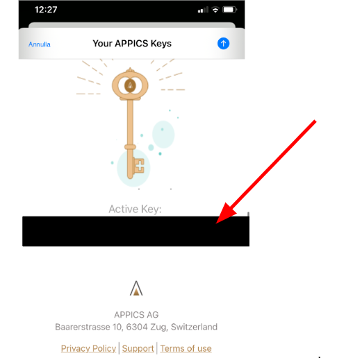 Dopodiché vi verrà fornito un user ID che è anche un wallet ID, questo è molto importante. Questa serie di numeri e lettere corrispondono all’indirizzo che dovete usare per inviare gli APX dall’esterno dell’applicazione.