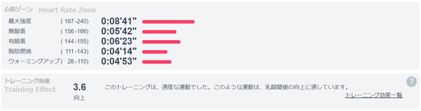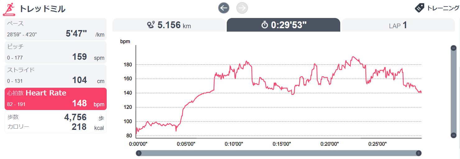Average Heart Rate(平均心拍数): 148 bpm (Max : 191 bpm)