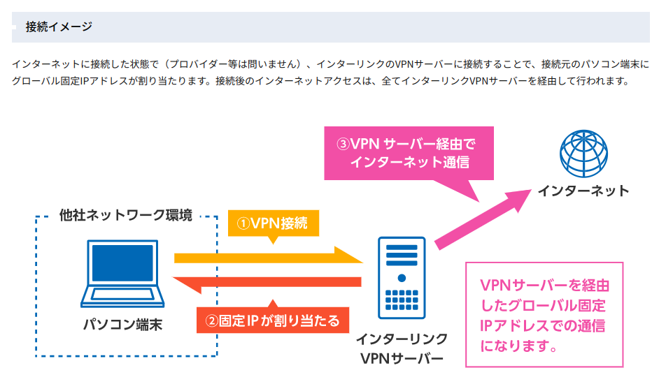 VPNサービスによる固定IPアドレス