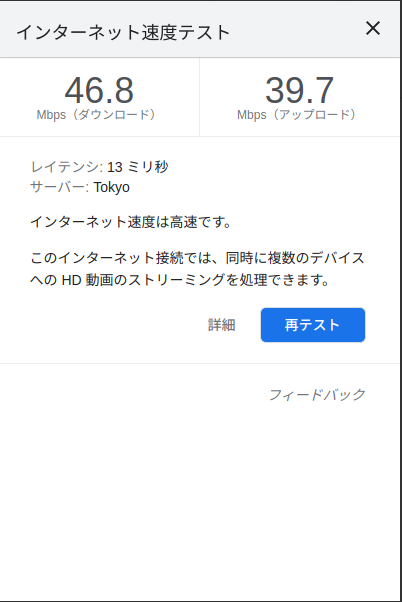 VPNサービスによる固定IPアドレスを使ってみて気になったのはリンク速度が遅いことです。VPNサーバーを経由するためだと思います。