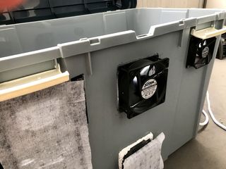 ホームセンターなどに足を運ぶと換気扇の取り付けで対応した方が良かったと思っています。2号機を作ることがあればそちらを試してみます。