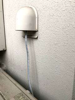 また電源についてはコンセントから部屋の換気口を通してベランダに配線しました。