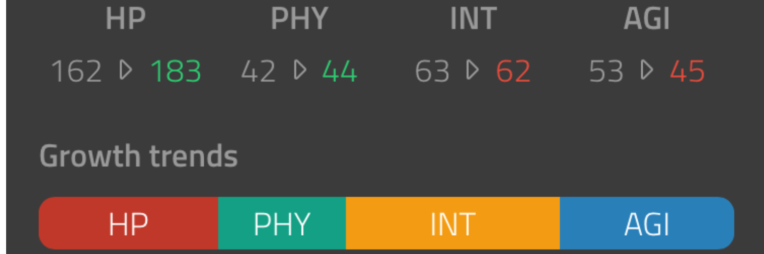 今回のアートエディットではHPとPHY(物理攻撃力)が上昇し、INT(魔法攻撃力)とAGI(行動速度)が減少しています。