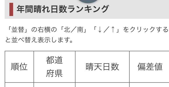 晴れの日ランキングは43位で、