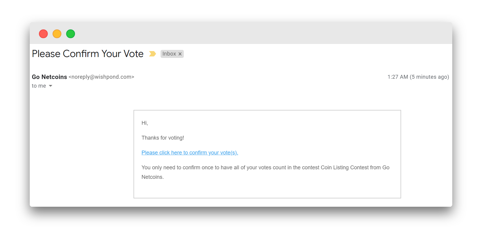 ④ 指定したメールアドレスに、投票を確認するためのメールが届きます。「Please Click here to confirm your vote」をクリックします。