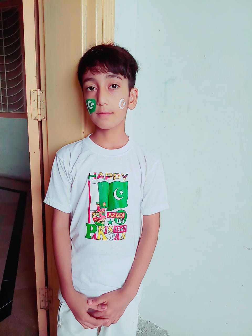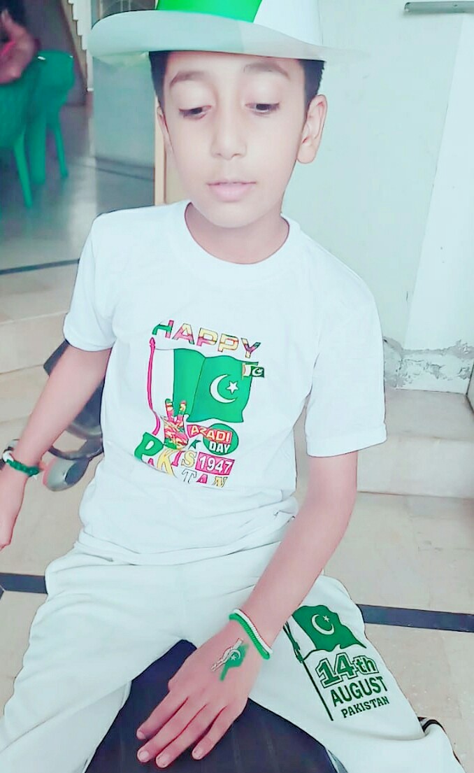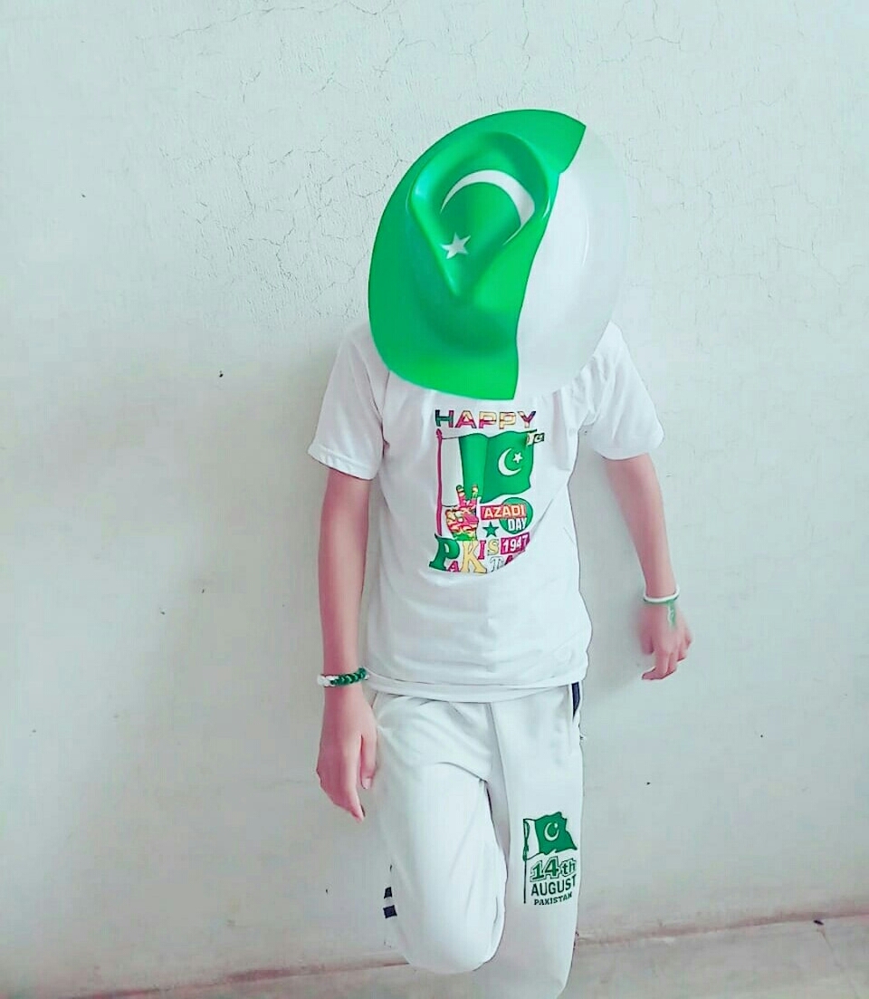 Asslam o alikum all Steemians, Iam from pakistan.Today 14th August is the day of Independence of Pakistan all Pakistanis celebrating this day with full enthusiasm Children decorate the streets and houses with flags Everyone is dressed in a green and white color Children have made flags on their faces Dishes are being prepared in the homes My younger brother is also celebrating this day in a very pragmatic way. Happiness is the end of every side