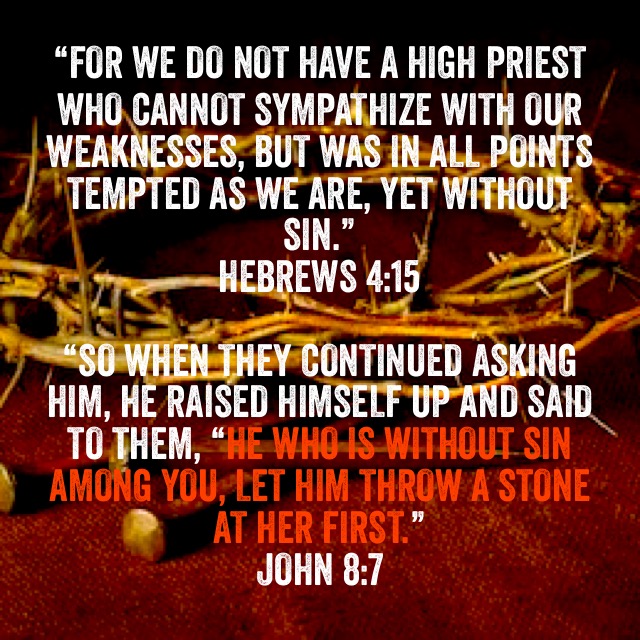 “So when they continued asking Him, He raised Himself up and said to them, “He who is without sin among you, let him throw a stone at her first.”
