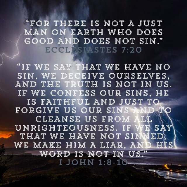 “If we say that we have no sin, we deceive ourselves, and The Truth is not in us. If we confess our sins, He Is Faithful and Just To Forgive us our sins and to cleanse us from all unrighteousness. If we say that we have not sinned, we make Him a liar, and His Word is not in us.”