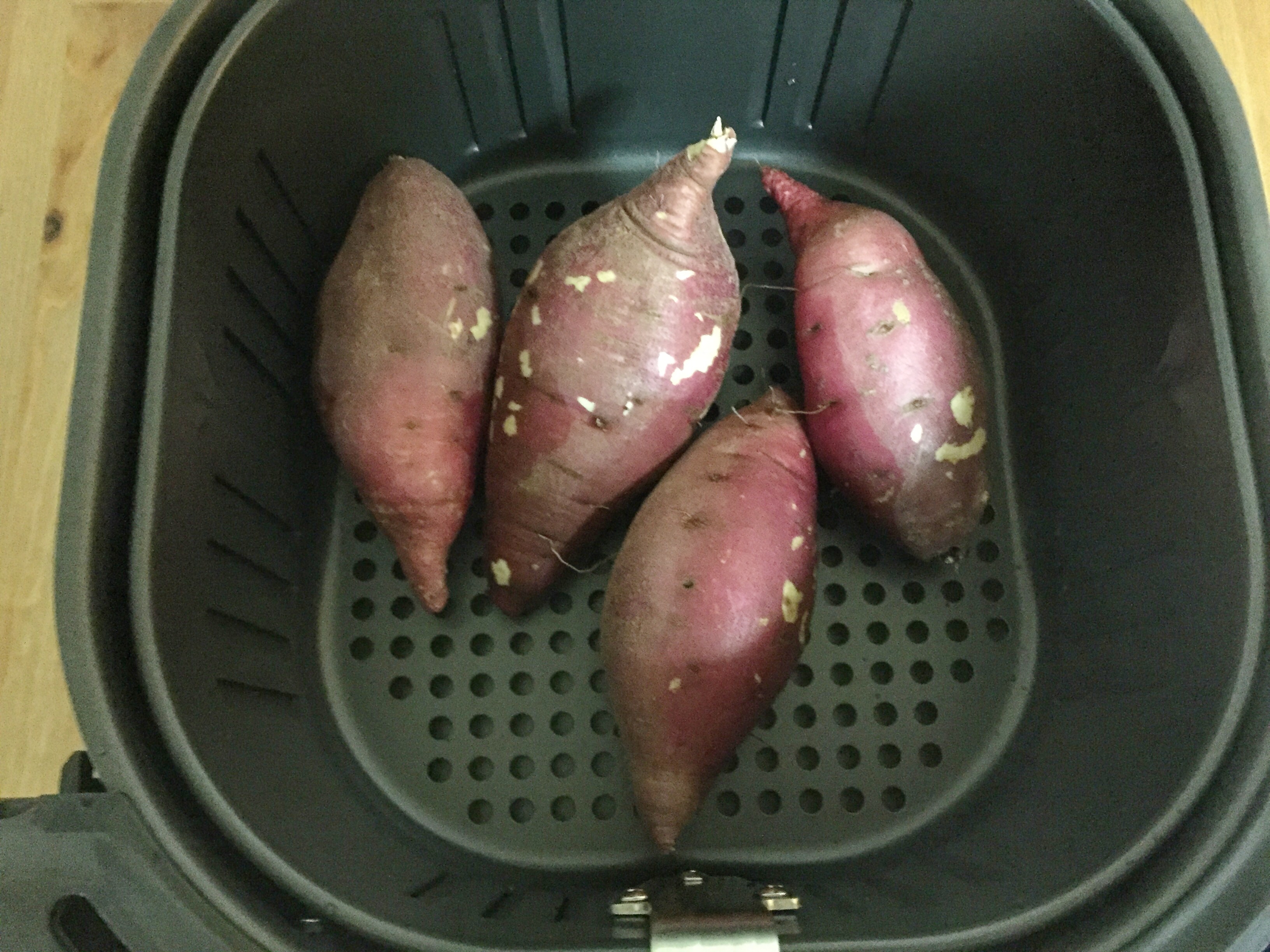 적당한 크기의 고구마를 넣고 200도에서 20분을 돌려보았는데 약간 덜 익은 느낌이라 다시 10분을 돌렸습니다.