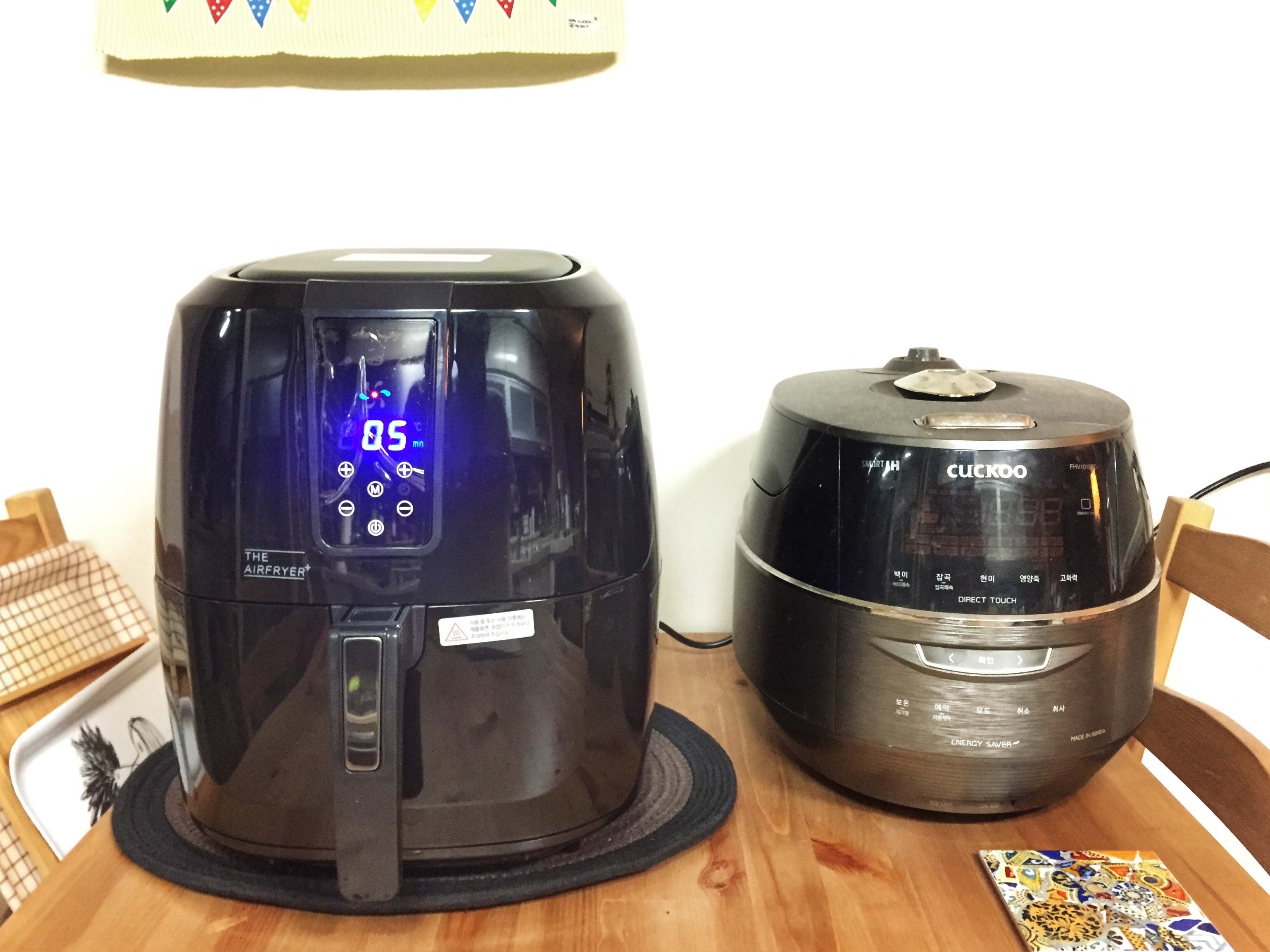 5.2리터의 대용량이라 크기가 어마어마하다고 듣긴 했는데 집에 놓아보니 생각보다도 훨씬 크네요. 옆에 있는 10인용 밥솥보다도 훨씬 존재감이 크게 느껴집니다.