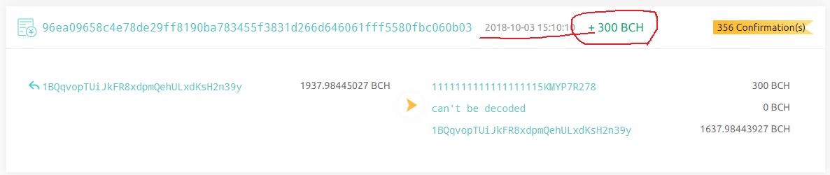 그리고 아니나 다를까 한달 이상 멈추었던 WHC 발행을 위한 BCH의 소각이 재개가 되었고 무려 300 개의 BCH 를 태워 없애버리는 사람까지 나타났습니다.