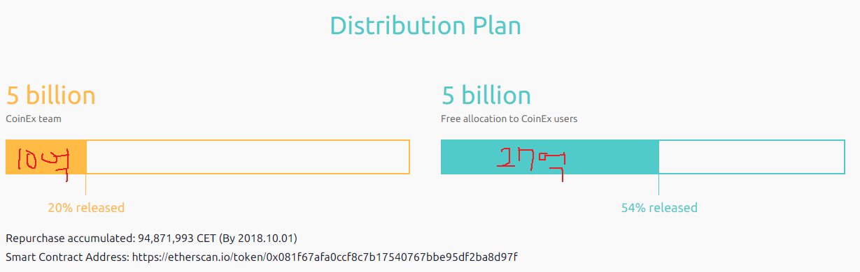 우선 CET 에 할당된 전체 VIAT 코인수는 7억2천5백만개 입니다. 현재 coinEX가 발행한 CET의 수량이 이미
