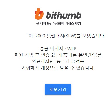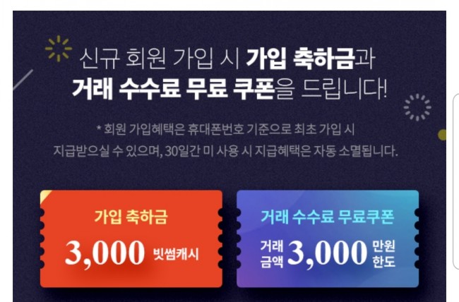 빗썸 신규가입 3,000원 현금지급 및 가입 축하 거래수수료 무료쿠폰 지급