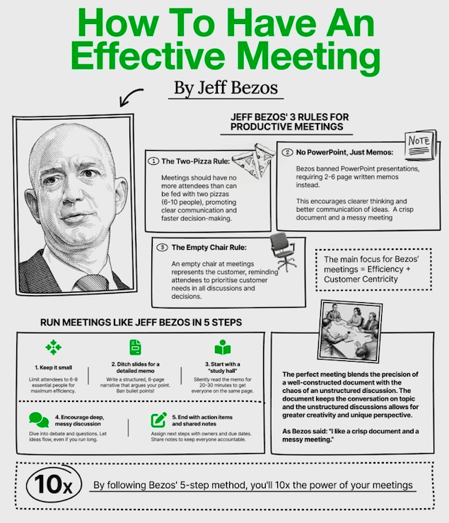 ↳ Ditch the slides. Bezos requires 2-6 page written memos instead.